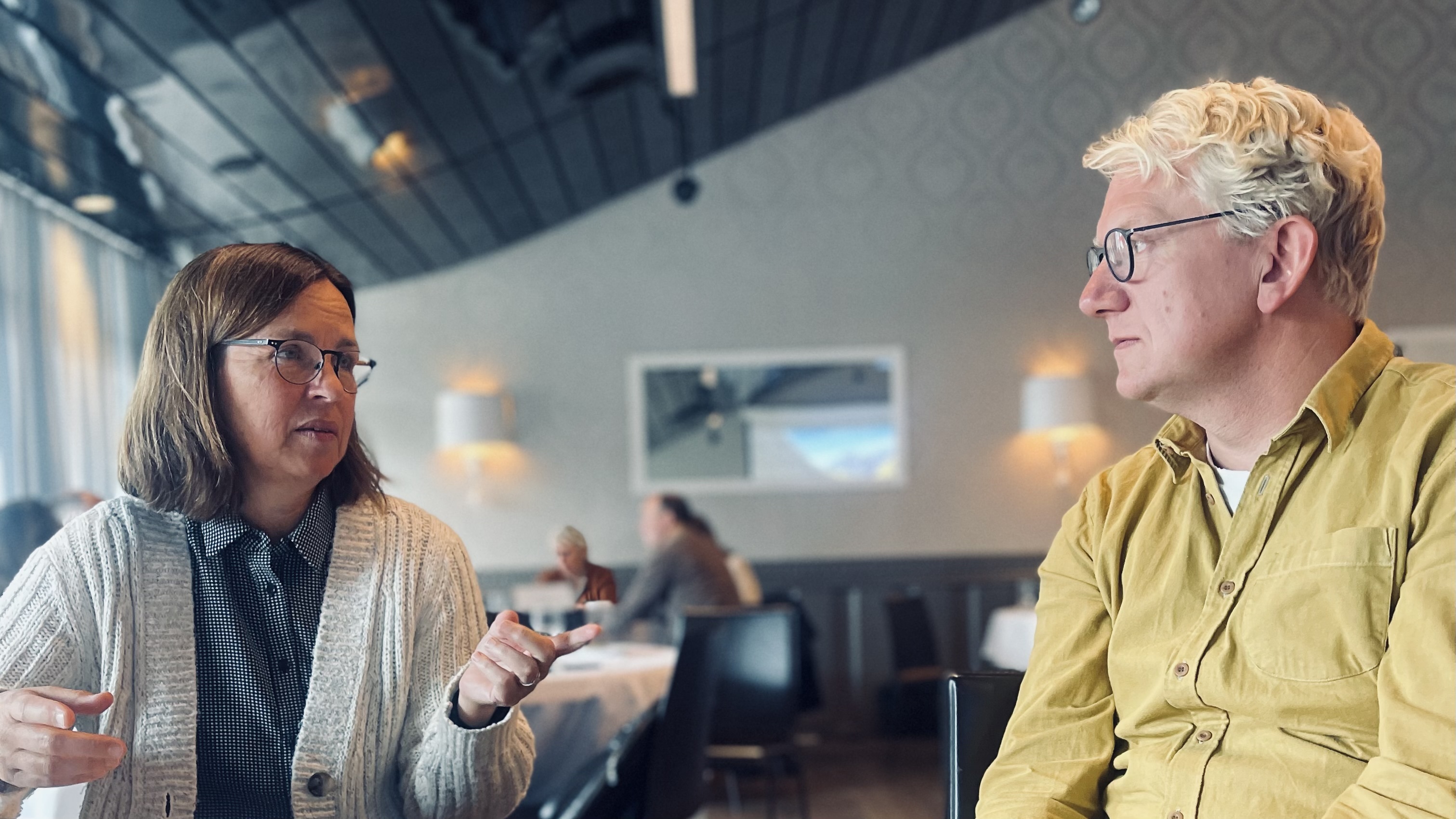 Øverste bildet: Aurskog-Hølands Anne-Gry Enger i samtale med prosjektleder Joakim Caspersen for NTNU Samfunnsforskning. Alle foto: Vegard Y. Smevoll, NTNU Samfunnsforskning.