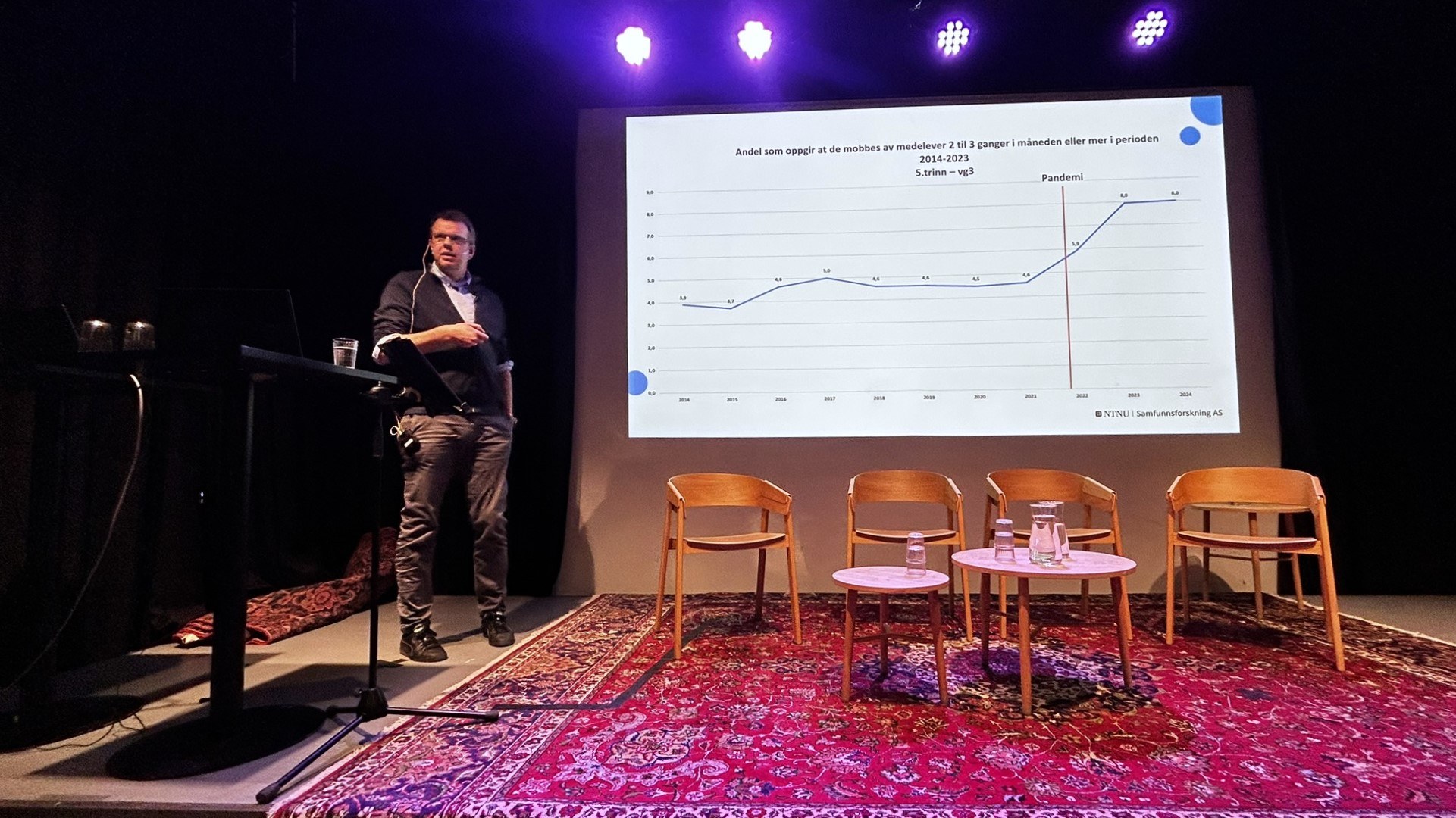 Hvordan skal vi så løse mobbeproblemet? Det ble hovedtema da forsker Christian Wendelborg senere fikk møte seniorrådgiver ved Statsforvalteren i Trøndelag, Gitte Franck Sehm og NTNU-student Kaisa Amdam til panelsamtale. Amdam, som også tidligere har fortalt sin historie på et arrangement i regi av NTNU Samfunnsforskning, mener det er viktig å lytte til de unge for å finne ut hva de faktisk har behov for.