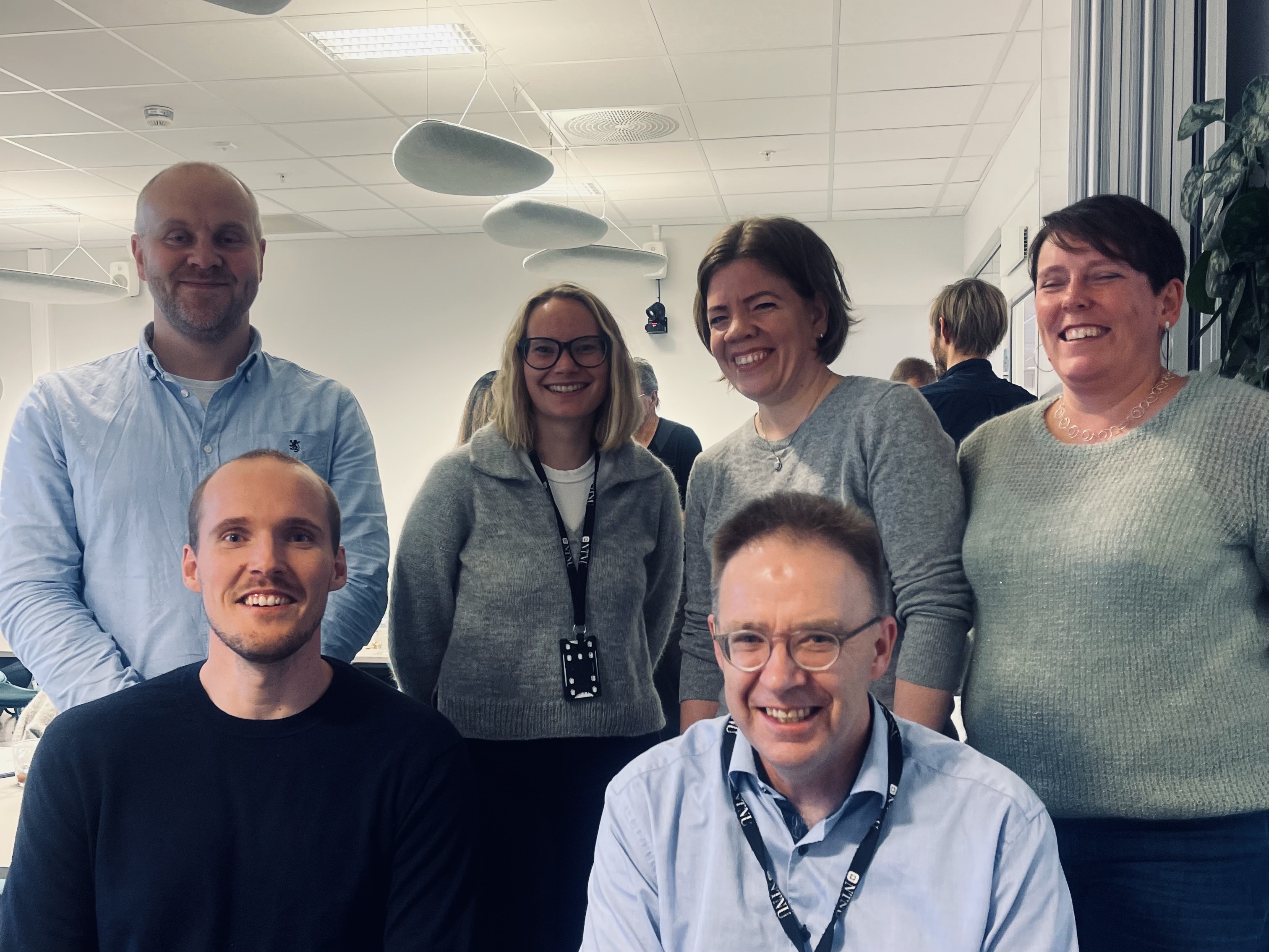 Øverste bildet: Fem av seks SØF-ansatte samlet til jubileum: Ole Henning Nyhus, Irmelin Helgesen Slettemoen (begynner i jobben over nyttår), Kaja von der Leyen og Marianne Haraldsvik øverst. Mads Fjeld Wold og Lars-Erik Borge foran. Jon Marius Vaag Iversen var ikke til stede. Foto: Vegard Y. Smevoll, NTNU Samfunnsforskning